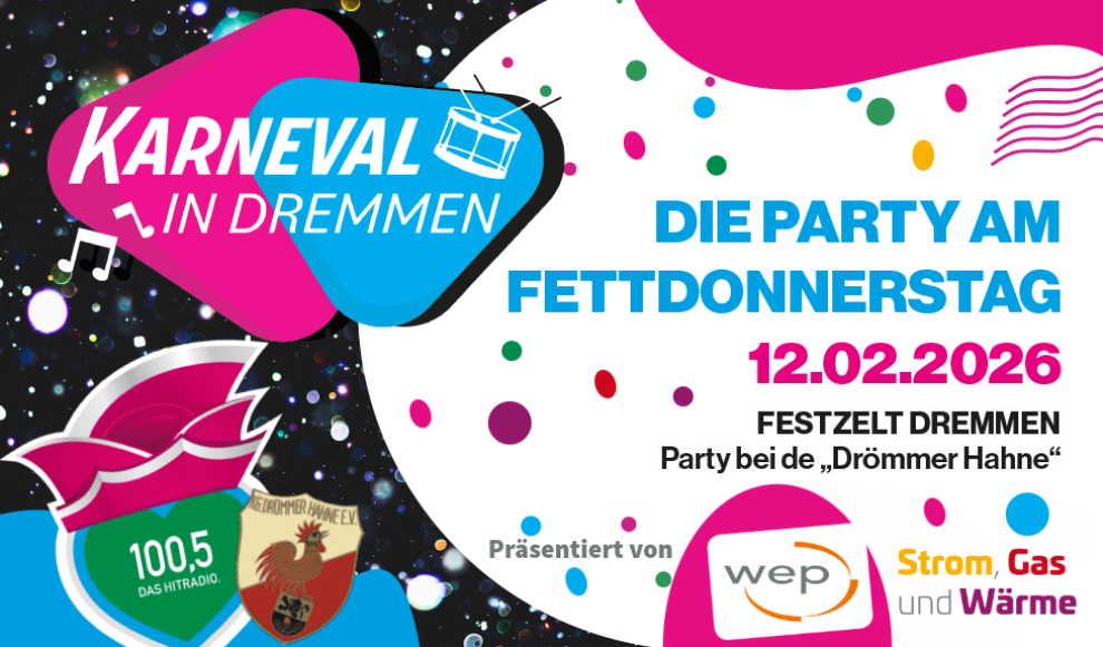 Am Donnerstag, den 12. Februar 2026, verwandelt sich das Festzelt in Dremmen wieder in Deine ultimative Karnevalshochburg!